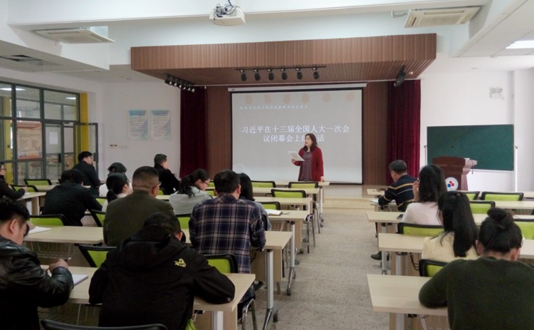 3月29日,学院全体教职工开展了全国两会精神集中学习活动专题学习会,学院党总支负责人从2018年政府工作报告、党和国家机构改革、《宪法》修改及两会的其他重要成果四个方面详细为大家解读了全国“两会”的重要内容。会议指出,“两会”传递出的国家未来建设发展的新目标、新举措,令人期待,让人振奋。会议要求,全体教职员工要把思想和行动统一到党中央的决策部署上来,进一步增强“四个意识”,坚定“四个自信”,在思想和行动上与以习近平总书记为核心的党中央保持高度一致。学习会上,大家学习收看了十三届全国一次会议闭幕会视频,认真学习了习总书记在闭幕会上的重要讲话。