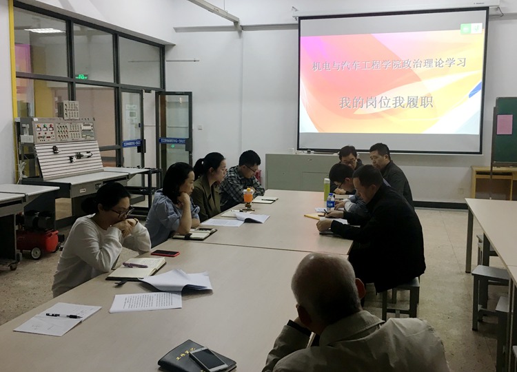 为了进一步增强教职工贯彻执行学校决策的自觉性和坚定性,汇聚区域性高职名校建设力量,4月26日,机电与汽车工程学院党总支组织全体教职工立足本职工作岗位,围绕《学校2018年党政工作要点》,开展“我的岗位我履职”学习讨论活动。