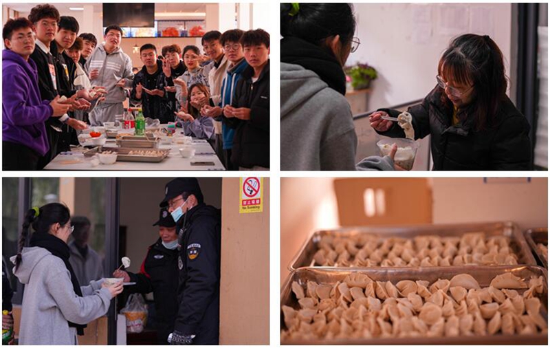为了让同学们在学校度过一个欢乐有意义的冬至,辅导员带领学生集中观看二十四节气大型纪录片《四季中国》,了解二十四节气对当代中国的影响,与同学们一起找寻中华民族优秀传统文化的深厚底蕴。随后,恬园食堂洋溢起浓浓的冬至节氛围,师生围坐在一起,细数家乡冬至习俗,一同包起饺子。十指翻飞间,一个个造型独特却又十分可爱的饺子呈现在大家面前,有的同学还展示起花式包饺子,引来片片赞许。为了活跃气氛,现场还举行了包饺子大赛、“我喂你吃”等趣味活动。等饺子煮好之后,同学们分头行动,把饺子送给宿管阿姨、保洁大叔、学校保安等,感谢他们平日里为同学们的辛勤付出与守护。“以前在家过节也包饺子,在学校与老师、同学一起热闹非凡,同样有家的温暖味道。”来自电气1901班的陈茗淇如是说。