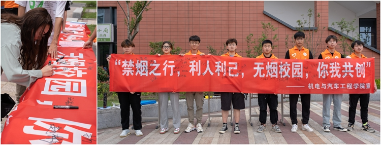 为积极响应创建无烟校园的号召,树立和展现我校师生良好的精神面貌,养成科学、健康、文明的生活习惯,创造洁净、优美、高雅的校园环境,在第34个“世界无烟日”来临之际,机电与汽车工程学院组织开展了“共建无烟校园,共享健康人生”主题宣传教育活动。