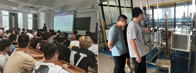 首先由专业主任主持“说专业”宣讲会,帮助学生了解校史院情、专业概况、毕业要求。宣讲会上各专业主任向同学们介绍了学院的人才培养方案、教学改革、师资队伍、专业人才及知名校友情况,帮助学生了解专业发展与地方产业的关系,树立专业学习信心,激发新生的学习动力。始业教育活动第二项由实训室负责教师带领同学们参观我院实训室,在参观至过控与仪表实训室以及罗克韦尔智能制造协同创新中心时,同学们表现出了浓厚的兴趣,实训教师就同学们提出的问题一一进行了解答。