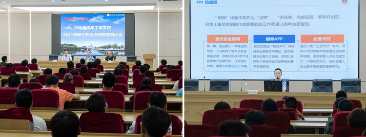 为进一步加强平安校园建设,提升学院学生的安全防范能力和知法守法意识,9月26日-28日,机电与汽车工程学院组织开展“平安微课”进学院暨2021级新生安全法制教育全员轮训活动。吴兴区公安分局龙泉派出所高校警务站杨美怡警官,保卫处、机电学院相关负责人、辅导员以及学院2021级全体新生800余人参加了本次活动。