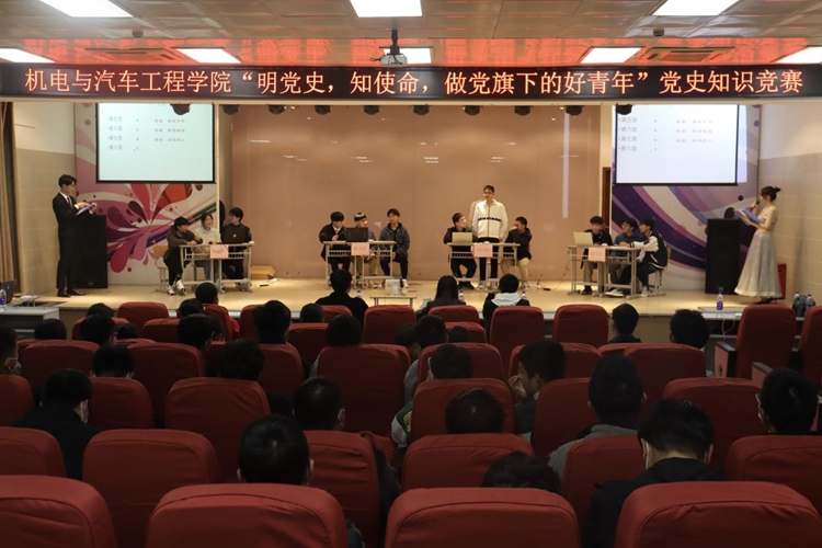 百年征程波澜壮阔,百年初心历久弥坚。在庆祝建党100周年之际,为深入学习贯彻习近平总书记在党史学习教育动员大会上的重要讲话精神,扎实推进党史学习教育走实走心,机电与汽车工程学院于10月22日晚举办“明党史,知使命,做党旗下的好青年”党史知识竞赛决赛,学院辅导员、入党积极分子及新生代表参加活动。