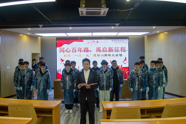 为纪念“一二·九”运动86周年,激发和弘扬青年学生爱国主义精神,12月8日,机电与汽车工程学院举行“同心百年路,再启新征程”纪念一二·九运动大合唱比赛。学院辅导员、班主任和进入决赛的十个班级参加本次活动。