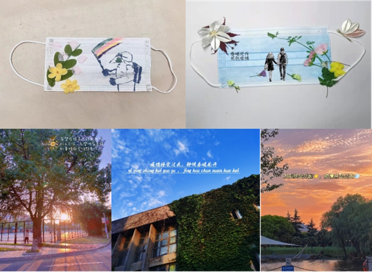 此次作品征集大赛分为两个类别,分别是创意口罩设计大赛和创意摄影大赛。同学们通过绘画、电子设计、口罩实物绘制和拼贴等多种形式对配色单调的口罩进行设计,配以文字、图片、花朵等装饰传递着温情和正能量,提高了同学们个人防护意识。春天已经悄然到来,校园里满眼尽是春意,充满着希望,同学们将镜头对准校园内的美好瞬间,“疫情终会过去,静待春暖花开”,“待疫情消散,共赴春光无限”,图片上温暖的文字表达着同学们对疫情退散的美好期望。