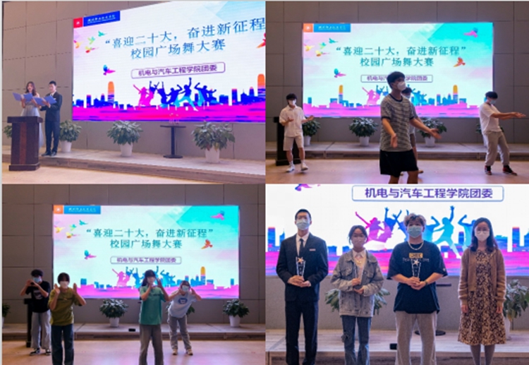 健身广场舞作为全民健身的良好形式和载体,如今在青年大学生群体中也颇为流行。为喜迎党的二十大,展现青年学子的风采,丰富校园疫情防控形势下同学们的课余生活,引导大家“走下网络,走出宿舍”,培养集体荣誉感和团队协作意识。近日,机电与汽车工程学院开展“喜迎二十大,奋进新征程”校园广场舞比赛。