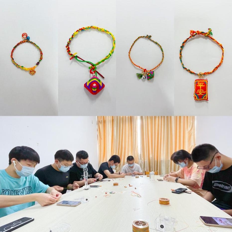 中国古代崇尚五色,以五色为吉祥色,端午节系五彩绳,有祈福纳吉的美好寓意。同时,节日的五彩绳也充分表现了祝贺的含义。活动中,有的同学依样画葫芦,有的同学别出心裁,独具匠心。女生心灵手巧,男生粗中有细,在大家热情高涨的制作下,原本一堆不起眼的材料变成了精致美观的五彩绳。随后,综合各参赛同学作品的艺术性、美观性,评选出了一等奖1名、二等奖2名、三等奖3名。