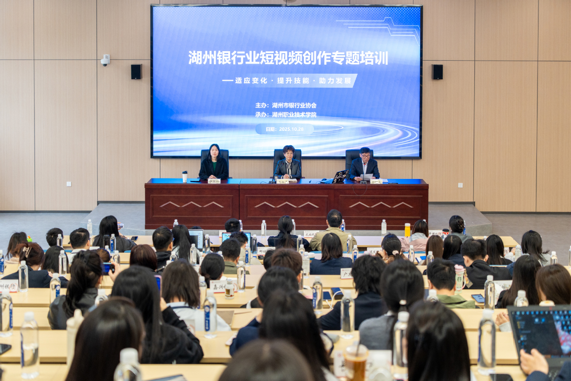 10月28日,湖州市银行业协会短视频创作专题技能培训班在我校智能制造与电梯学院顺利开班。本次培训旨在帮助本市银行从业人员系统提升短视频内容创作能力,助力其更好地运用短视频平台展示工作与生活、挖掘金融领域热点内容,进一步增强金融知识的普及与传播效果。全市37家银行机构新闻宣传的相关工作人员共90余人参加了本次培训。