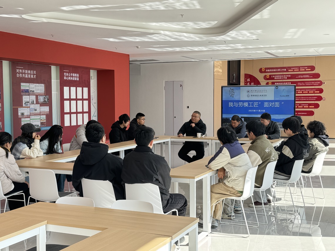 11月20日上午,我校智能制造与电梯学院在4号工科实训楼召开“我与劳模工匠面对面”活动。国家级技能大师工作室领办人许君锋、相关工作室指导教师、学生代表共计二十余人参加。