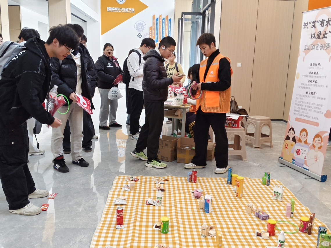 2025年12月1日是第38个世界艾滋病日。为积极响应我国今年世界艾滋病日“社会共治,守正创新,终结艾滋”宣传主题,普及防艾知识,进一步提高青年学生对艾滋病的认知与防范能力,增强学生健康意识,营造积极健康的校园环境,11月27日中午,我校智能制造与电梯学院开展“识‘艾’有术,以爱止‘艾’”防艾游园会活动。